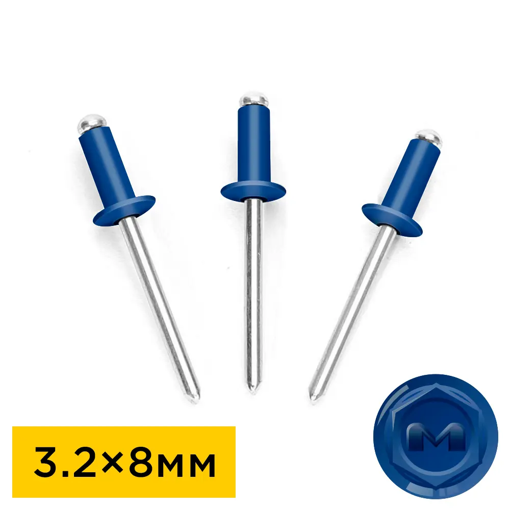 Заклепка вытяжная 3.2x8мм RAL5005 Синий Сигнал алюминий/сталь