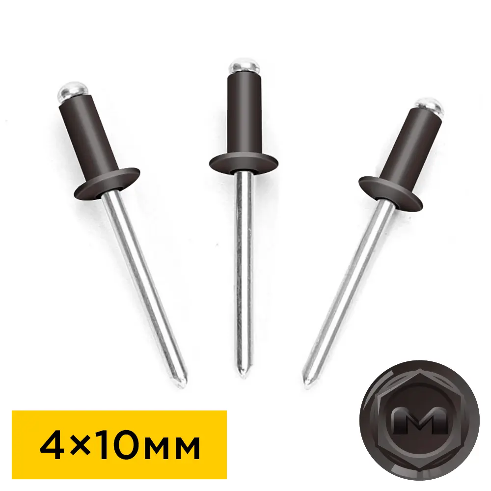Комбинированные вытяжные заклепки Алюминий/Сталь (Аl/St) диаметр 4мм, длина тела 10мм цвет RAL 8019 Темный Шоколад предназначены для соединения различных материалов и частей конструкций, в том числе и таких, к которым доступ открыт только с одной стороны. Их также используют для соединения деталей, не поддающихся сварке. Окраска заклепок осуществляется на собственных линиях покраски бренда Daxmer.