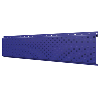 Линеарная потолочно-стеновая панель с ПЕРФОРАЦИЕЙ для вентиляции цвет RAL5002 Синий Ультрамарин применяется в качестве софитов для подшивы крыши, наружной и внутренней отделки потолков, стен, фронтонов фасада дома в России.