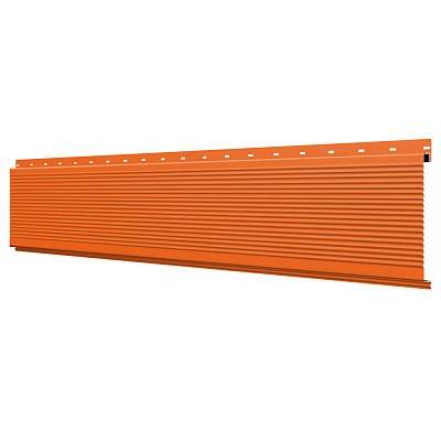 Линеарная потолочно-стеновая панель РИФЛЕНАЯ усиленная цвет RAL2004 Оранжевый Апельсин применяется в качестве софитов для подшивы крыши, наружной и внутренней отделки потолков, стен, фронтонов фасада дома в России.