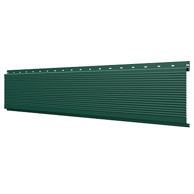 Линеарная потолочно-стеновая панель РИФЛЕНАЯ усиленная цвет RAL6005 Зеленый Мох применяется в качестве софитов для подшивы крыши, наружной и внутренней отделки потолков, стен, фронтонов фасада дома в России.