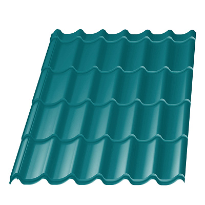 Металлическая черепица Меркурий цвет RAL 5021 Морская Волна имеет профиль внешне на кровле напоминающий классическую керамическую черепицу. Меркурий — это обновленный аналог профиля металлической черепицы для кровли крыши. Форма профиля имеет богатый внешний вид напоминающий небольшие набегающие волны. Лучшие показатели герметизации сделали профиль Меркурий гарантом стабильной и долговременной службы на крышах в России. Данный профиль отличается не только своим качеством и практичностью, но и благородным внешним видом.