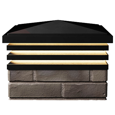 Колпак серии BONA Черный с подсветкой — прежние преимущества композитных колпаков в новой форме. Отлично сочетается с заборами жалюзи, заборами ранчо, заборами из металлопланкена, ДПК, современными домами в стиле хайтек.