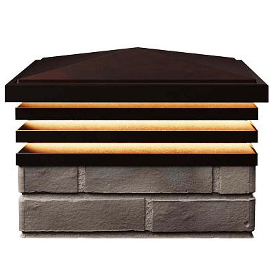 Колпак серии BONA Коричневый с подсветкой — прежние преимущества композитных колпаков в новой форме. Отлично сочетается с заборами жалюзи, заборами ранчо, заборами из металлопланкена, ДПК, современными домами в стиле хайтек.
