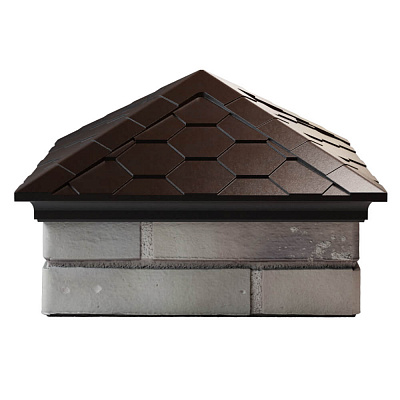 Простая и лаконичная форма, декоративное оформление в виде имитации черепицы, наличие капельника и возможность оснащения фонарем и пикой – все это колпак EVEREST коричневый с посадкой на 1.5 кирпича. Состав изделия – песчано-полимерный композит. Это простой и экологически чистый материал, в состав которого входит сухой песок, полимеры, красяще элементы и технологические добавки. Срок эксплуатации изделия составляет более 20 лет. Простой и легкий монтаж без электроинструмента, грязи и пыли. Широкая цветовая гамма позволяет подобрать изделие под любой дом или ограждение.