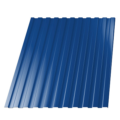 Маркировка «С» обозначает, что профлист предназначен для возведения стен, цифра 8 — это высота профиля 8 мм, число 1150 — рабочая ширина листа в мм. Производится из рулонной стали оцинкованной с полимерным покрытием RAL5005 Синий Сигнал 0.40мм эконом.