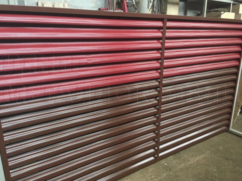 Секционные горизонтальные заборы-жалюзи от Центра Металлокровли изготавливаются из оцинкованной стали с полимерным покрытием. Каждый из двух видов заборов-жалюзи имеет свои особенности.